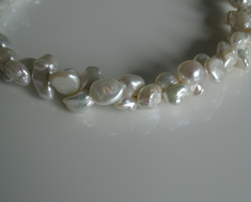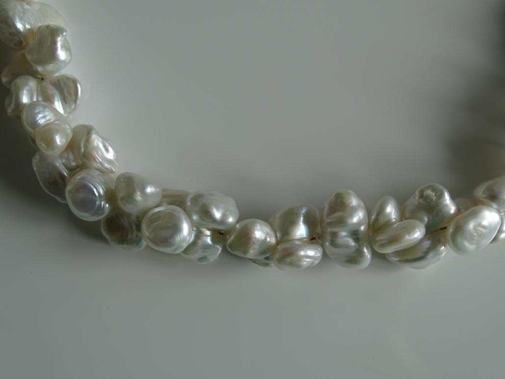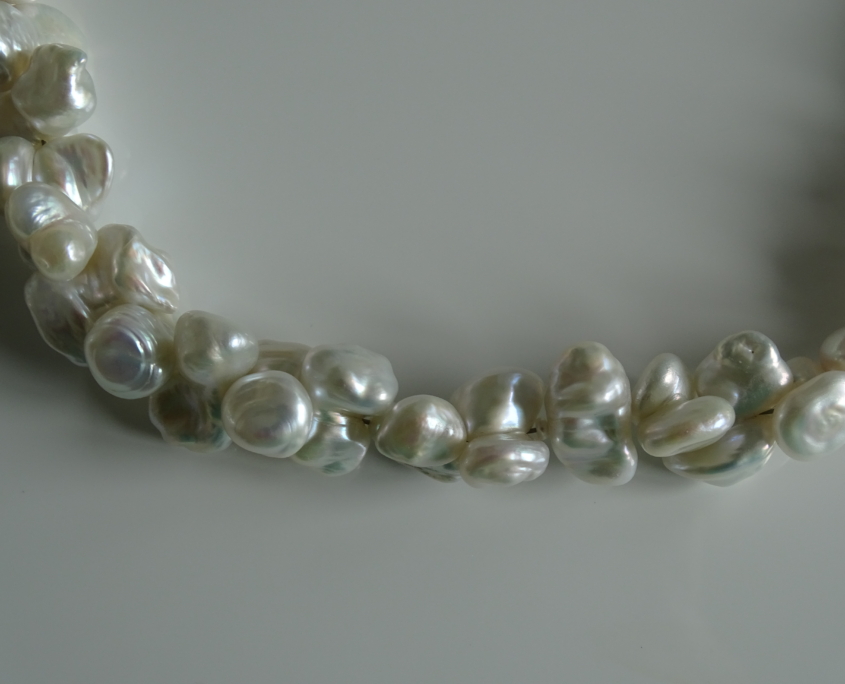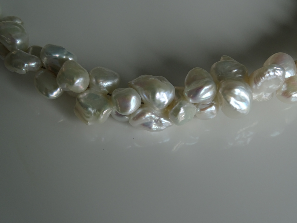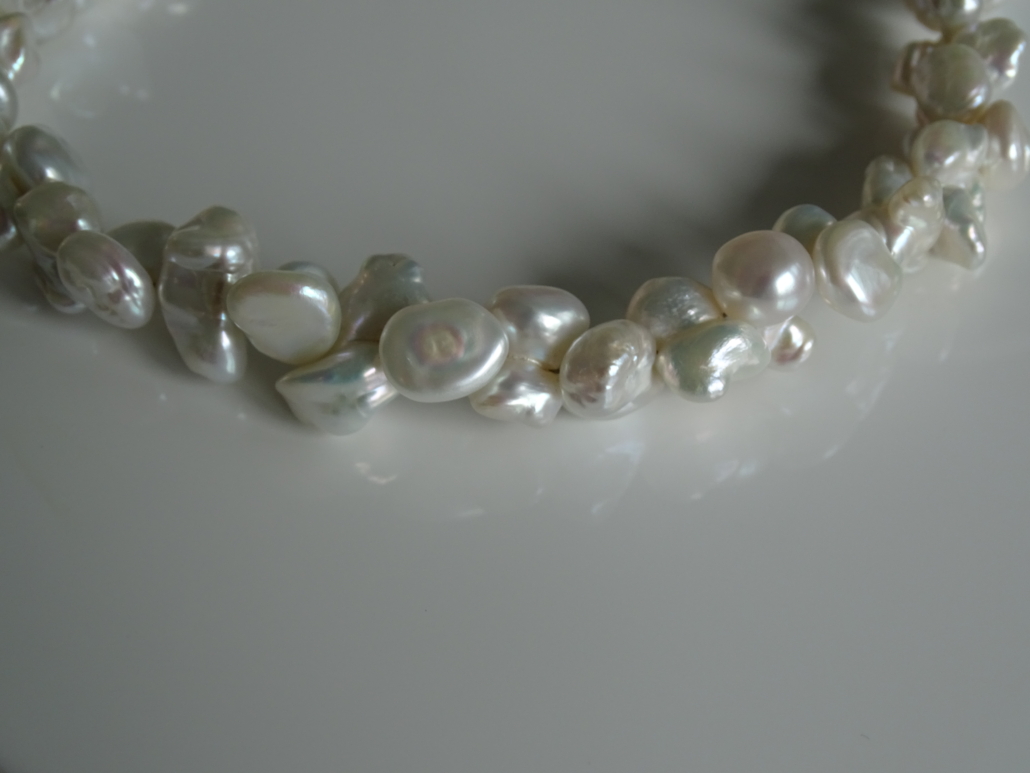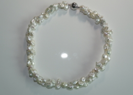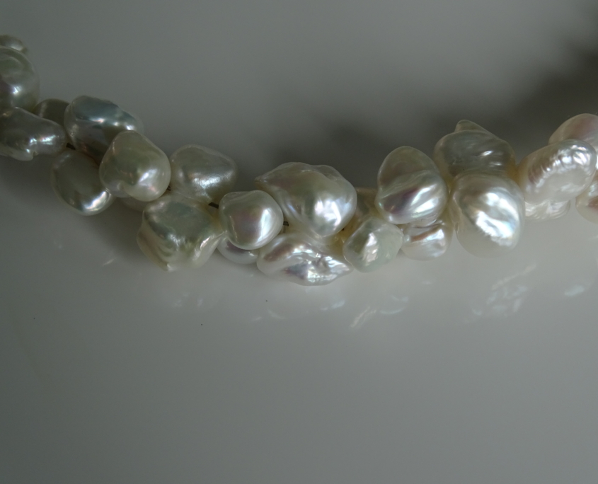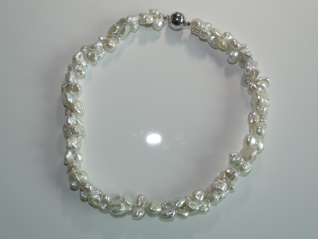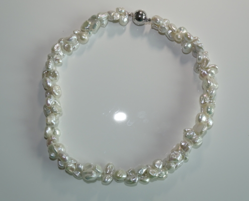 Süsswasserperlen Keshi Butterfly, 10-12 mm, in bezauberndem Glanz und Ausdruck. Magnetverschluss Silber rhodiniert.