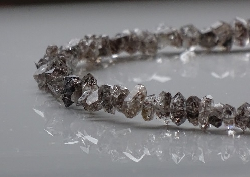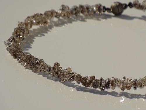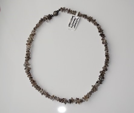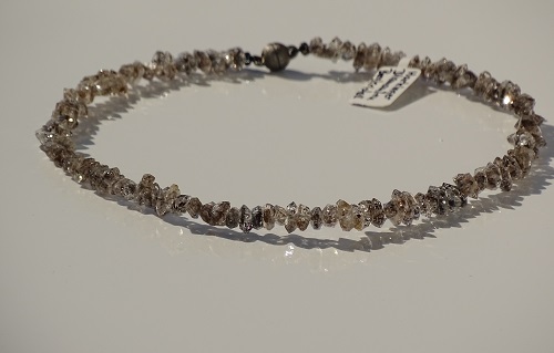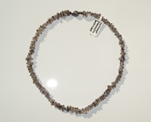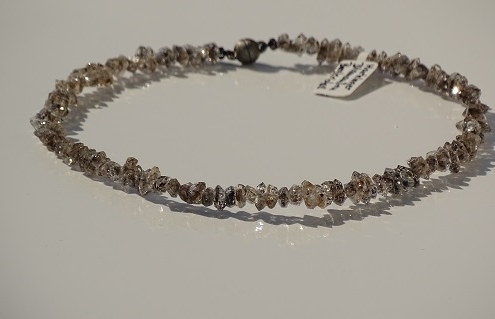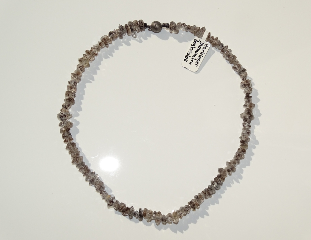 Collier in Härkinger Bergkristall, „Härkinger Diamanten“. Sehr schöner Stein mit tollem Effekt – einmalig. Magnetverschluss Silber rhodiniert. Passt fast immer.