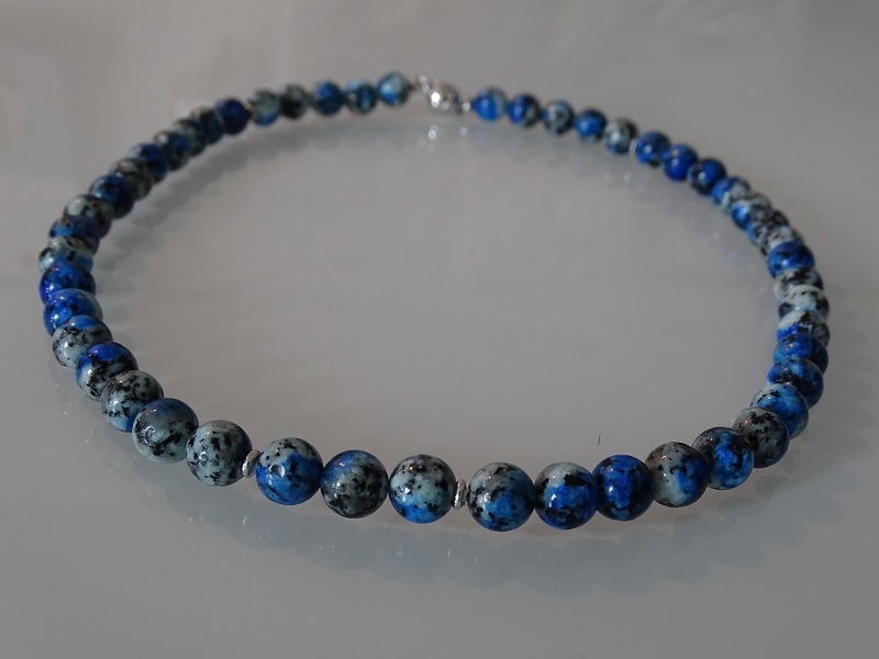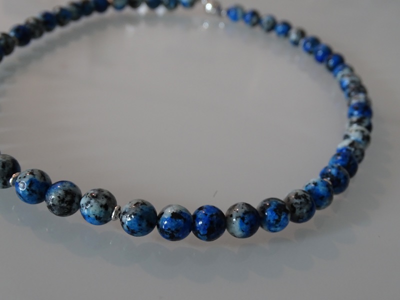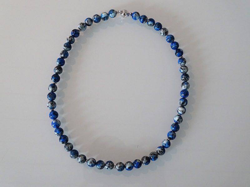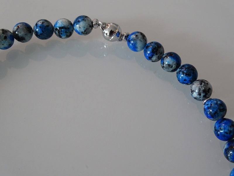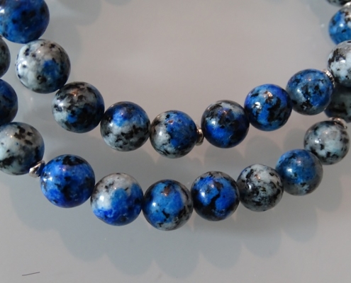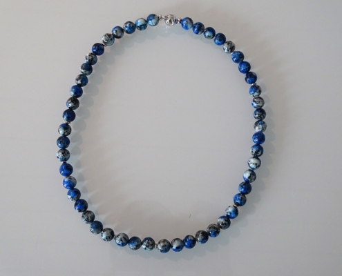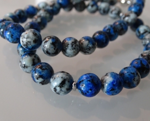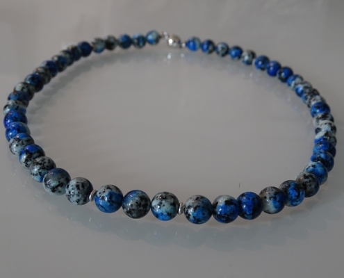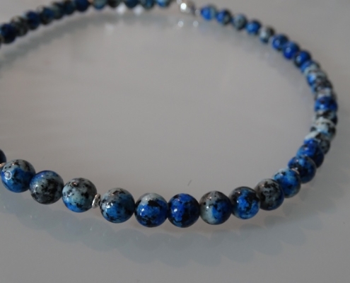 K 2 – Der Stein aus dem Himalaya-Massiv. Der strahlend schöne Stein mit seinem blau/grau/weiss-Ton ist etwas Besonderes. Er stammt vom zweithöchsten Berg der Erde. Kombiniert mit edlen Silber-Zwischenteilen (rhodiniert). Verschluss: Magnet ebenfalls in Silber rhodiniert.