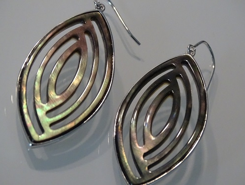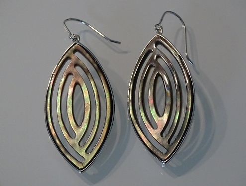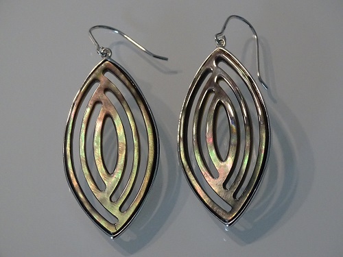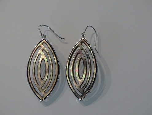 Ohrhänger Länge 4 cm, Breite 2 cm aus Perlmutt der Abalone-Muschel. Schöner Seidenglanz. Silber rhodiniert. Ein nicht alltäglicher Schmuck.