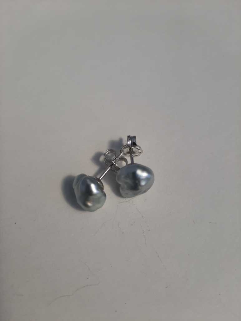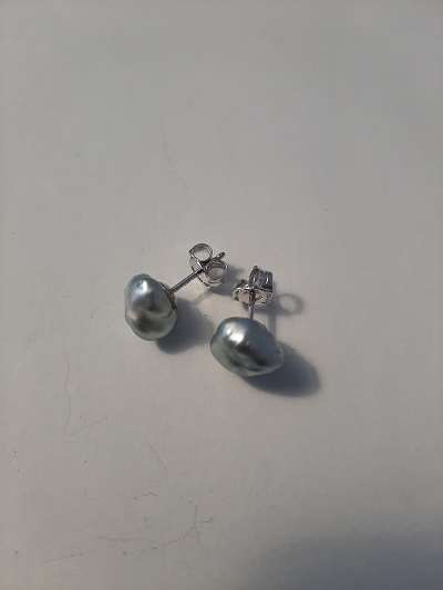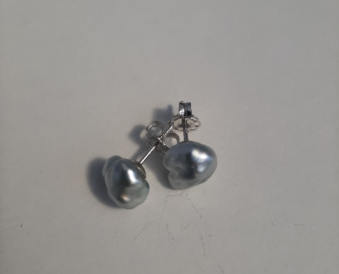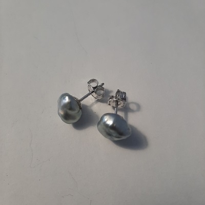 Ohrstecker Silber rhodiniert. Tahitiperlen Keshi silber/grau