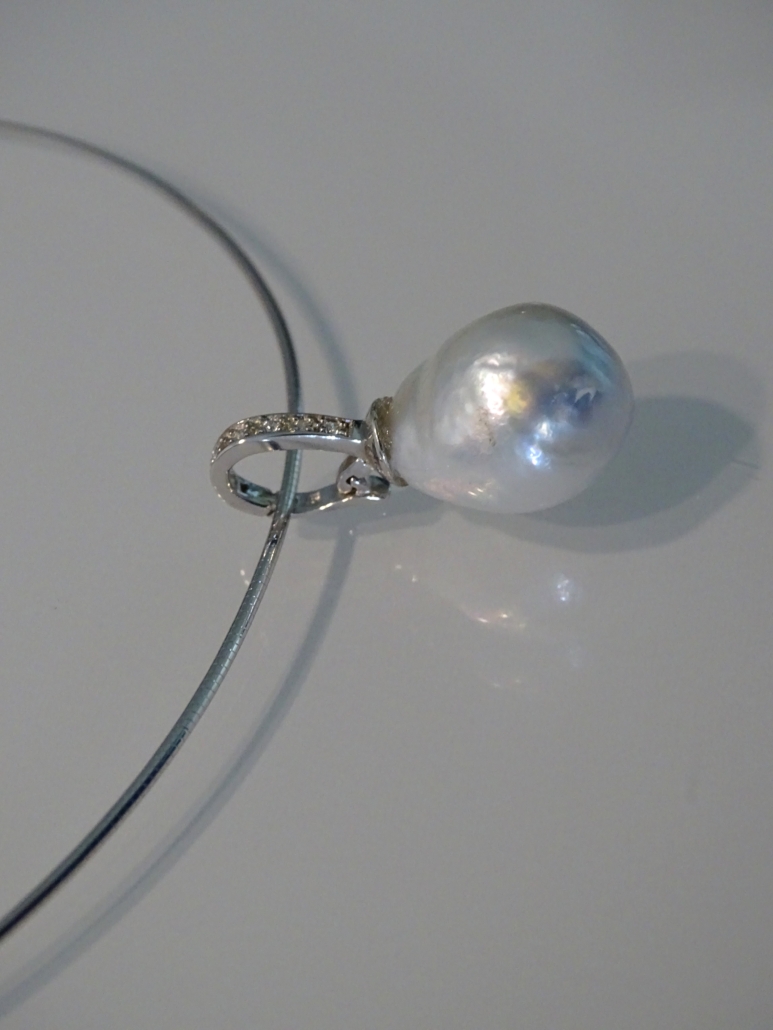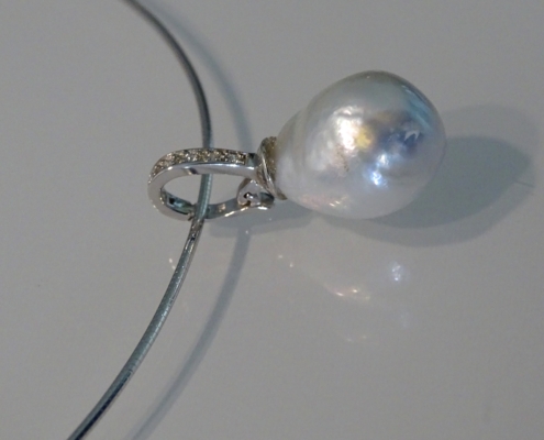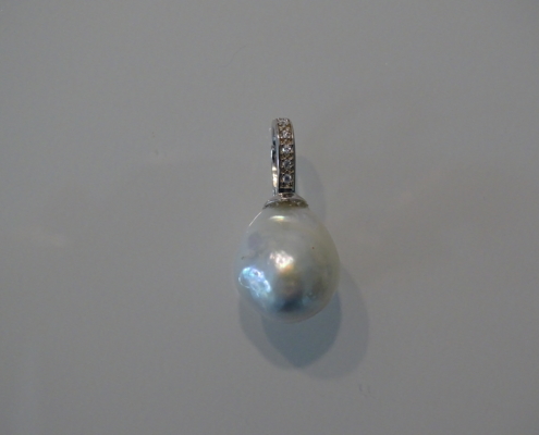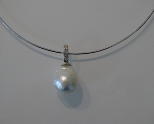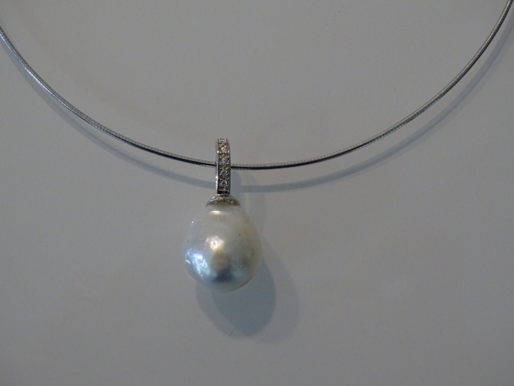 Wunderschöne Südseeperle als Anhänger – ein echter Hingucker. Der Anhänger in Silber rhodiniert mit Zirkonia ist als Clip gearbeitet, kann also an verschiedene Ketten oder Reifen montiert werden.